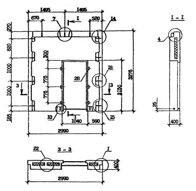 - в панелях без проемов - отличие в типах или расположении вертикальных торцов панели (зеркальность).