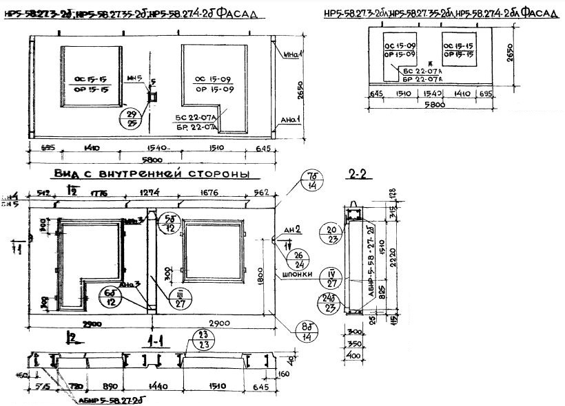 НР5-58.27.4-2б   Наружная стеновая панель рядовая по Серии 1.132-1.